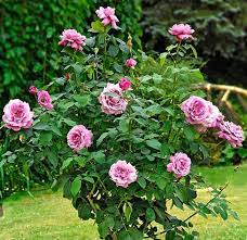 Charles de Gaulle es particularmente adecuada para ser cultivada como rosa estándar porque tiene una forma natural en la que las ramas crecen anchas desde la unión del brote y forman una urna. No es una rosa especialmente alta, alcanzando una altura de hasta 1.2 metros y casi igual de ancho. Florece continuamente durante toda la temporada en un tallo algo corto y puede formar un grupo de flores perfectamente formadas y muy fragantes en tallos gruesos... como tal, un solo tallo es perfecto para dar la apariencia de un jarrón completo de flores. Forma de flor grande, doble (17-25 pétalos). Charles de Gaulle es una rosa de un tono lila malva/azul cálido único y de múltiples pétalos de gran tamaño, una de las más finas entre las rosas malva más antiguas. Charles de Gaulle es especialmente adecuada