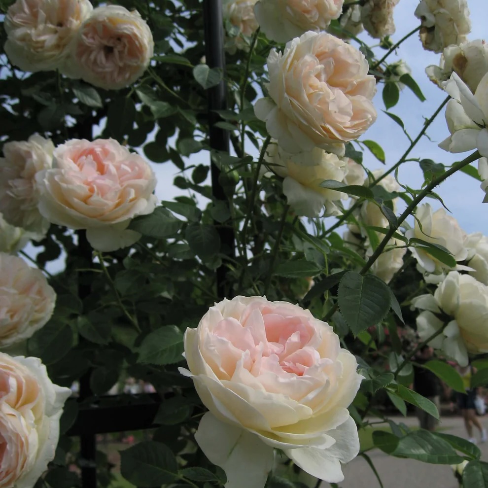 Flores de color blanco puro con forma de copa, compactas, llenas y con un número de pétalos de 60-70. El follaje es exuberante y saludable con un color verde brillante. Las flores crecen de 2 a 5 por tallo, son bastante grandes (10 cm de diámetro) y exhalan una fragancia suave y ligera. Florece generosa y repetidamente y crece hasta una altura de 180-200 cm. Al ser un rosal sarmentoso, está especialmente indicado para cultivarlo junto a arcos, pérgolas, muros y vallas, dotando a tu jardín de elegancia y encanto.