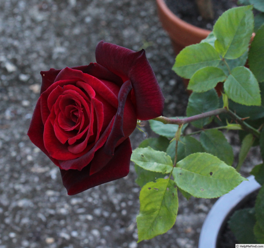 Esta rosa es un "deporte" del conocido Papa Meilland Meicesar. Las flores son dobles, ahuecadas, de 14 cm de diámetro con 30/35 pétalos aterciopelados, de color rojo violeta y muy fragantes. Vigorosa, refloreciente, alcanza los 350 cm tanto de alto como de ancho. Descubierto por Stratford en 1970.