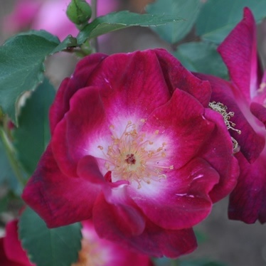 Carmesí - violeta, envejeciendo hasta oscurecerse. Forma de flor pequeña a mediana, simple a semidoble. Floración continua (perpetua) durante toda la temporada. De un criador chino desconocido, 1808. El área de distribución nativa de esta especie va desde el sur de China hasta el norte de Indochina y Taiwán. Es un arbusto trepador o liana y crece principalmente en el bioma templado. Las rosas de China, en particular las derivadas de Rosa chinensis Jacq., florecen repetidamente.