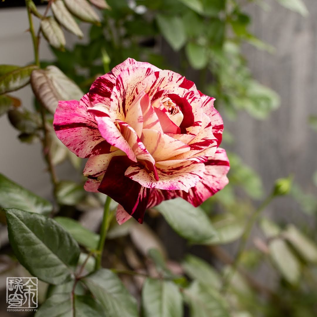 Crema, rayas rojas. Fragancia cítrica intensa. Hasta 50 pétalos. Diámetro promedio de 10,8 centímetros. Forma de flor grande, muy llena (41+ pétalos), en pequeños racimos. Florece en oleadas a lo largo de la temporada.