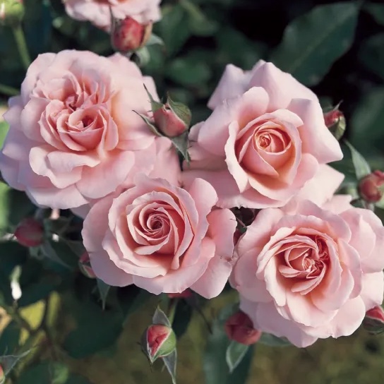 El ideal de la floribunda es un ramo listo para usar en un solo tallo. Las plantas son ordenadas, lo que las convierte en acentos perfectos para jardines o en impresionantes parterres de variedades iguales o similares. Algunas de las variedades más encantadoras tienen pétalos simples o casi simples. Mientras que 20 a 30 pétalos dispuestos de forma informal pueden ser más comunes, otras floribundas tienen racimos de flores similares en forma a las rosas híbridas de té a menor escala. Cualquiera que haya viajado por Europa y observado los vastos parterres de rosas a lo largo de las carreteras públicas podría pensar que las floribundas son principalmente rojas; sin embargo, aparecen en todos los colores de rosa. Las floribundas decepcionan cuando no tienen fragancia y muchas carecen de aroma, cuando pasa mucho tiempo entre los ciclos de floración y cuando las viejas ramas persisten lo suficiente como para convertirse en un desastre empapado después de una fuerte lluvia.