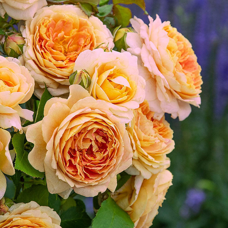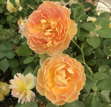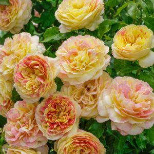 Amarillo dorado, pétalos externos más claros, centro albaricoque con sombreado rosa. Fuerte fragancia a frutas y especias. De 54 a 146 pétalos. Diámetro promedio de 8,89 centímetros. Flores grandes, muy llenas (41+ pétalos), principalmente solitarias o en pequeños racimos. Forma de floración en brotes redondeados. Florece en oleadas a lo largo de la temporada.