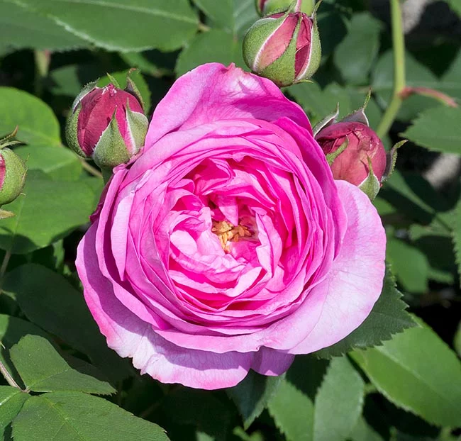 Flores grandes y muy dobles, con aspecto de camelia. Color rosa brillante con tonalides lavanda. Tiene la forma perfecta de una rosa Borboniana, inicialmente con aspecto de copa que al abrir se transforma en una bella roseta dividida en cuartos. Forma densos ramilletes cuyo peso hace arquear las ramas. Es una de las rosas antiguas más floríferas. Rosal compacto y vigoroso, de ramas arqueadas cubiertas por suaves hojas verde oliva y espinas pardas. Se puede utilizar para flor cortada o jardín. Si no se poda puede cultivarse como trepador aunque más a menudo se utiliza en setos de borde. Es parental de muchas rosas francesas famosas.