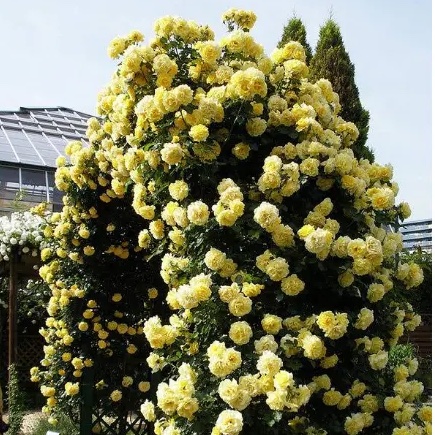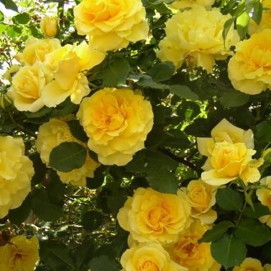 Amarillo limón. Ninguna / sin fragancia. De 35 a 50 pétalos. Diámetro promedio de 3.25 pulgadas (8.26 centímetros). Florece en oleadas a lo largo de la temporada.