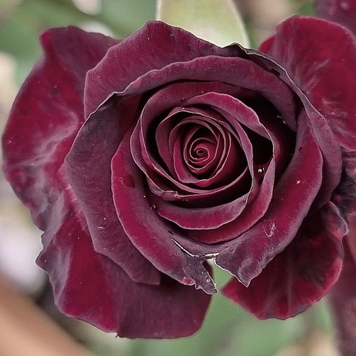 Rosa Black Baccara es una cautivadora rosa de té híbrida con flores de tamaño mediano a grande, de 7 cm de ancho (3 pulgadas), muy llenas (45 pétalos), de centro alto y aterciopeladas flores de color rojo oscuro. Las espectaculares flores nacen en tallos largos y fuertes y duran hasta 2 semanas en un jarrón, lo que convierte a esta rosa en una opción popular para cortar jardines. La textura aterciopelada y el color único de las flores, que florecen en oleadas desde la primavera hasta el otoño, contrastan muy bien con el follaje de las hojas de color verde oscuro semibrillantes. Un arbusto alto, tupido y de hermosa forma que te dejará sin aliento.