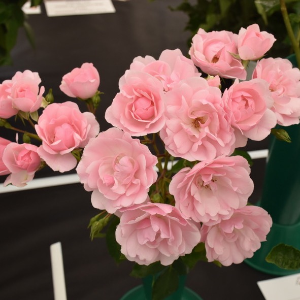 Rosa con bordes más oscuros. Ninguna o leve fragancia. Hasta 40 pétalos. Diámetro promedio de 2pulgadas. Floración en racimos medianos y llenos (26-40 pétalos) en grandes grupos. Prolífica, florece en oleadas a lo largo de la temporada.