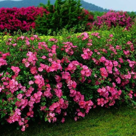 Esta rosa paisaje es muy popular para decorar varios lugares. Sus hermosas rosas son de color rosa salmón y su follaje denso, verde oscuro y semimate se destaca bien en el paisaje. Cada rosa es de corte plano, está compuesta por 5 pétalos y mide 6 cm de diámetro. La planta tiene un hábito arbustivo y su vegetación es fuerte. Este arbusto tiene una floración abundante y regular desde la primavera hasta el otoño. Su inflorescencia es en racimos de 3 a 5 flores. El rosal mide de 1 metro a 1,30 metros de ancho y su resistencia al frío es muy buena. Sin perfume