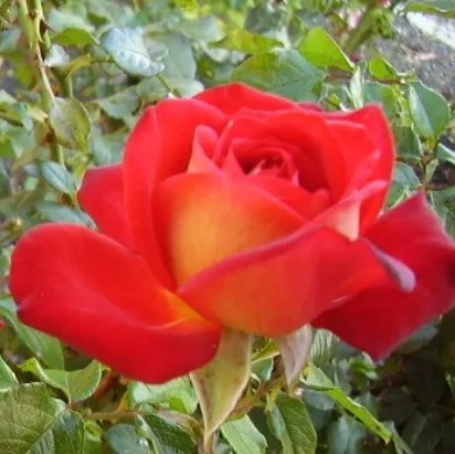 ¡Esta rosa es magnífica con su efecto de dos tonos! Sus grandes flores son sensuales con sus ligeros pétalos combinando sutilmente su tierno amarillo limón con un vigoroso rojo fresa. El follaje es verde oscuro brillante. Esta rosa tiene forma de cornete, está formada por 45 pétalos y mide un diámetro de 9 cm. Su inflorescencia es en racimos de 3 a 5 flores. Su vegetación es regular y homogénea.