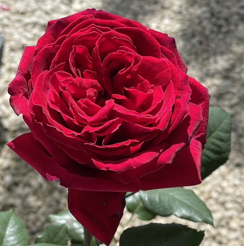 Rojo. Fuerte, damasco, rosa antiguo, fragancia a frambuesa. De 92 a 109 pétalos. Diámetro promedio de 5 pulgadas. Muy grande, muy lleno (41 pétalos o más), forma de flor mayormente solitaria. Floración abundante en primavera o verano con algunas flores di