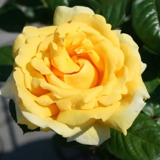 Esta Rosa Romántica tiene un color amarillo mimosa y parece recién sacada de la paleta de Miguel Ángel. La corola es doble y está llena de unos 45 pétalos que se muestran en una forma de copa muy elegante. Cada rama produce hasta cinco grandes flores (de 12 cm de diámetro) que exhalan una agradable fragancia afrutada. Una rosa apta para ser cultivada en pequeños grupos o solitaria en el jardín, puede alcanzar una altura de 110-130 cm; una variedad también apta para el cultivo en maceta.